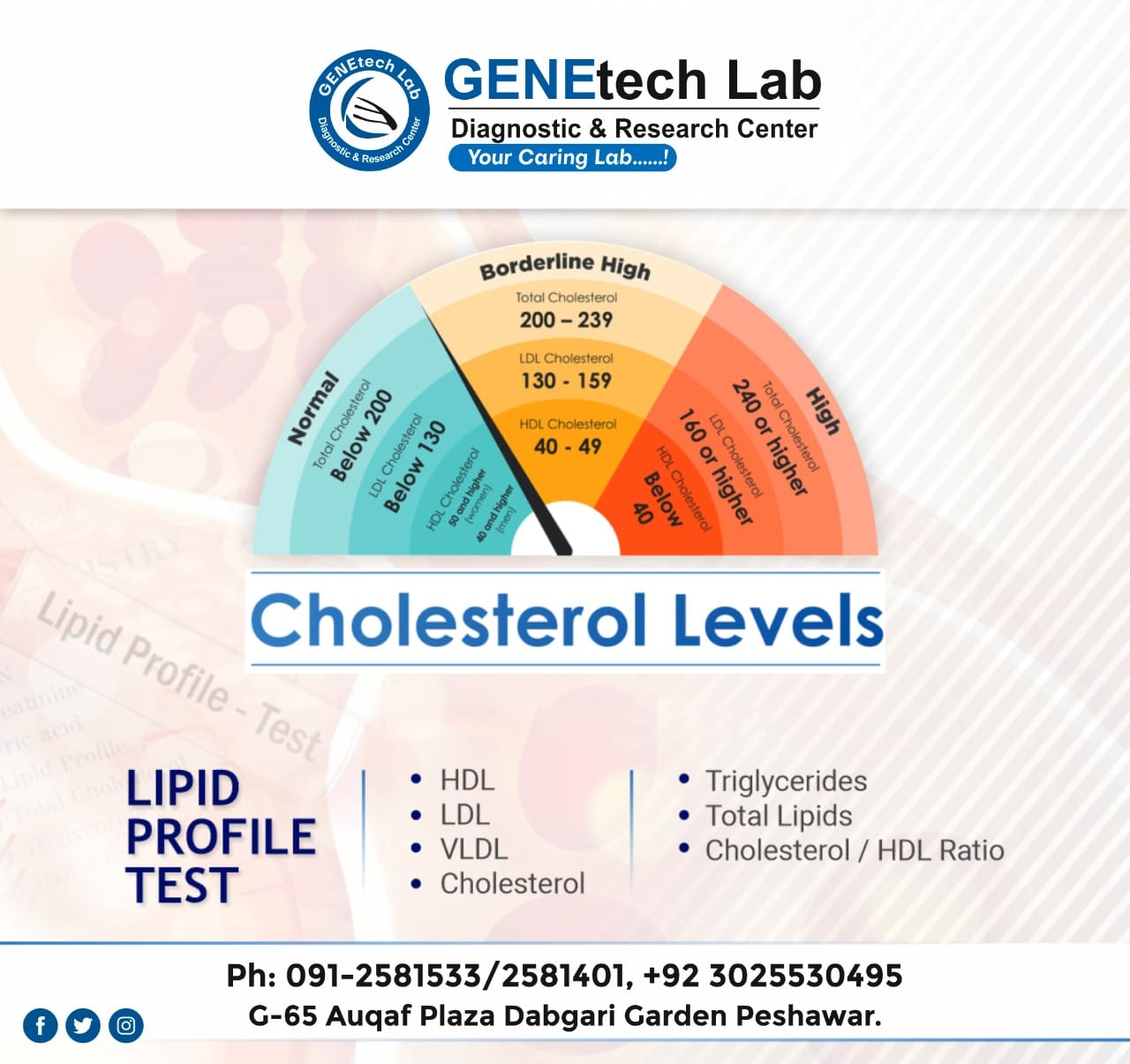 GENEtech Lab Diagnostic and Research Centre was established in 2014. The lab is facilitating superior quality diagnostics services to its customers through a very efficient network of labs and collection points. We use fully automated instruments for lab tests with best accuracy and precision. This enables the lab to report test results quickly without ever compromising on quality. It is because of this reputation of uncompromising quality and quick reporting time that is the reference lab of choice for multiple hospitals and labs.