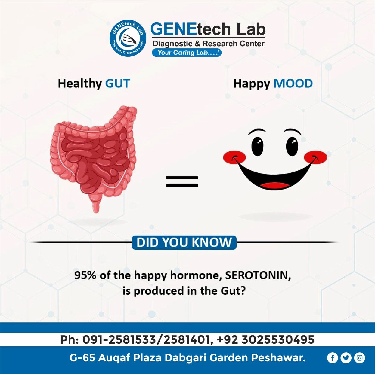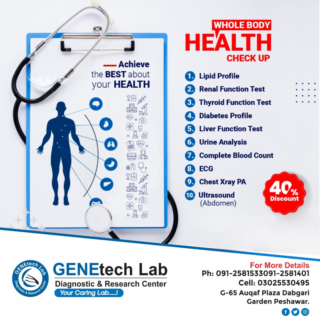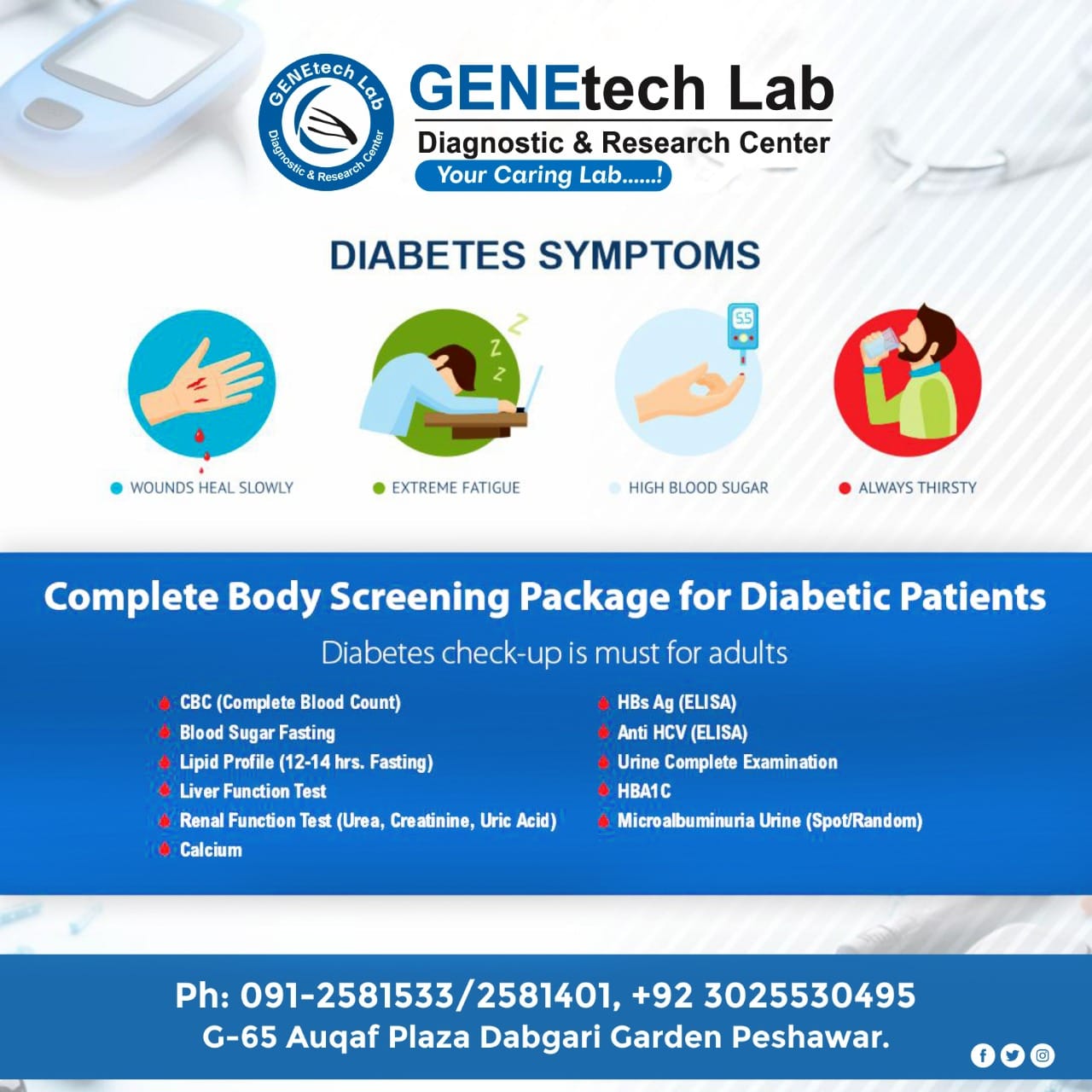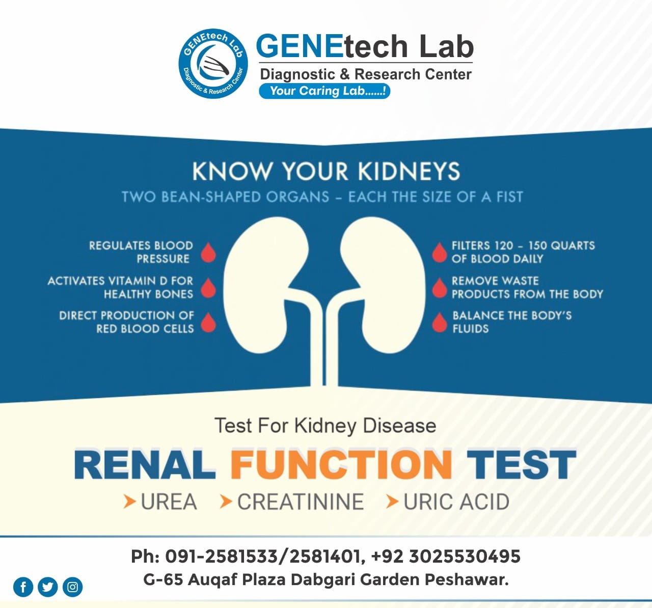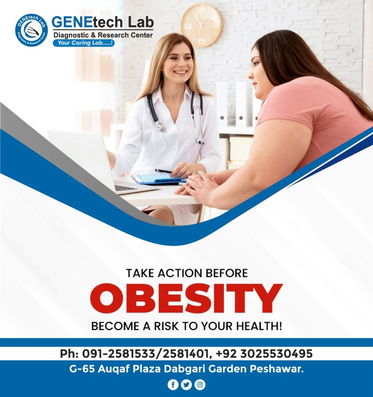 GENEtech Lab Diagnostic and Research Centre was established in 2014. The lab is facilitating superior quality diagnostics services to its customers through a very efficient network of labs and collection points. We use fully automated instruments for lab tests with best accuracy and precision. This enables the lab to report test results quickly without ever compromising on quality. It is because of this reputation of uncompromising quality and quick reporting time that is the reference lab of choice for multiple hospitals and labs.